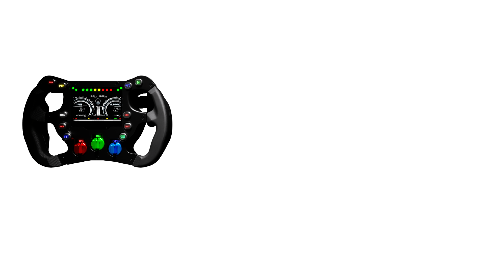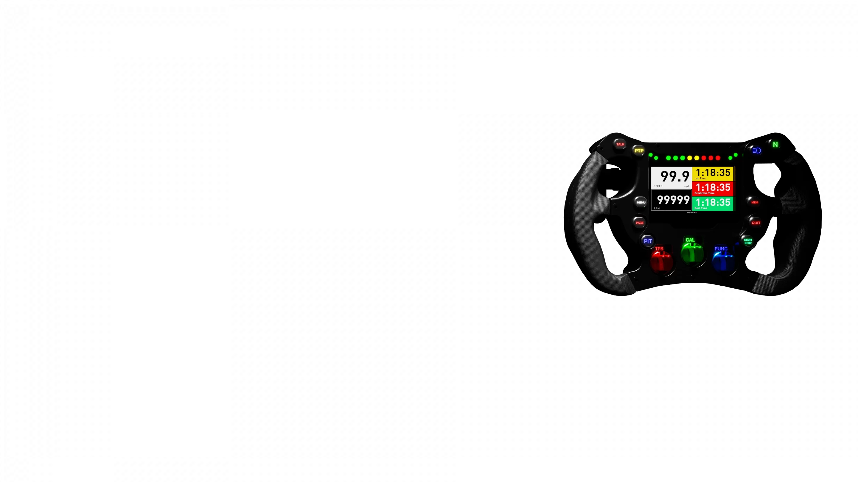 - Integrated display: Each steering wheel features a built-in high-resolution TFT display with fully customisable layouts, providing important data such as speed, RPM, gear position and lap times.