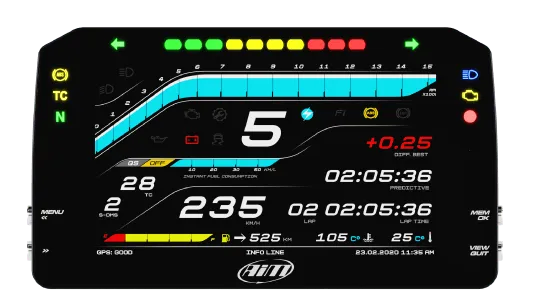 - Integrated GPS Module: The included GPS09 module connects via CAN, automatically recognising tracks and providing precise lap and split times to enhance performance analysis during track sessions.