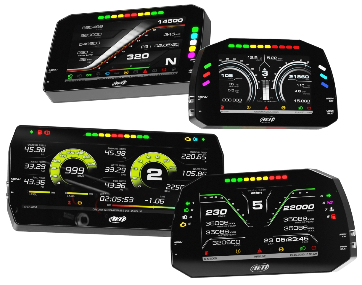 All fitted with a four pin 719 binder plug connection to fit all Aim loggers and dash display/loggers.